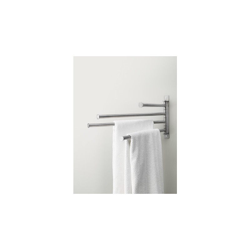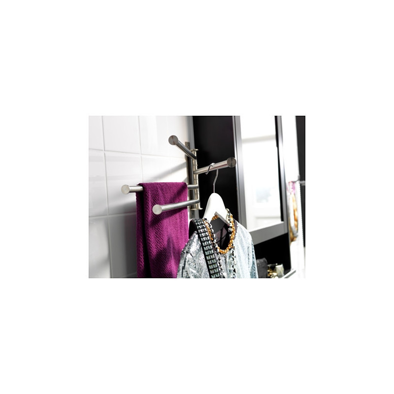 آويز حوله ایکیا مدل GRUNDTAL براي نصب در حمام، سرويسبهداشتي و حتي آشپزخانه طراحي شده است و به بهترين شكل به حولهها و دستمالهاي پارچهاي نظم ميدهد، علاوه بر اين با قرار دادن حولههاي رنگارنگ و طرحدار روي اين آويز، ظاهري مدرن و جذاب به محيط منزلتان خواهيد بخشيد. از ويژگيهاي منحصربهفرد اين محصول بايد به قابليت چرخش كامل آن اشاره كنيم؛ بهاينترتيب بعد از نصب آويز روي ديوار ميتوانيد با چرخاندن ميلهها به سمت چپ يا راست، حولهها يا دستمالهاي موردنظرتان را تفكيك كنيد و در نتيجه بهآساني به آنها دسترسي داشته باشيد. آویز GRUNDTAL از موادي مرغوب و بادوام ساخته شده است كه طول عمر بسيار خوبي دارند و در برابر وزن انواع حولههاي حمام يا دستمالهاي آشپزخانه مقاومتش را حفظ خواهد كرد، بنابراين بدون نگراني ميتواند حولههاي موردنيازتان را روي هركدام از ميلهها آويز كنيد.
