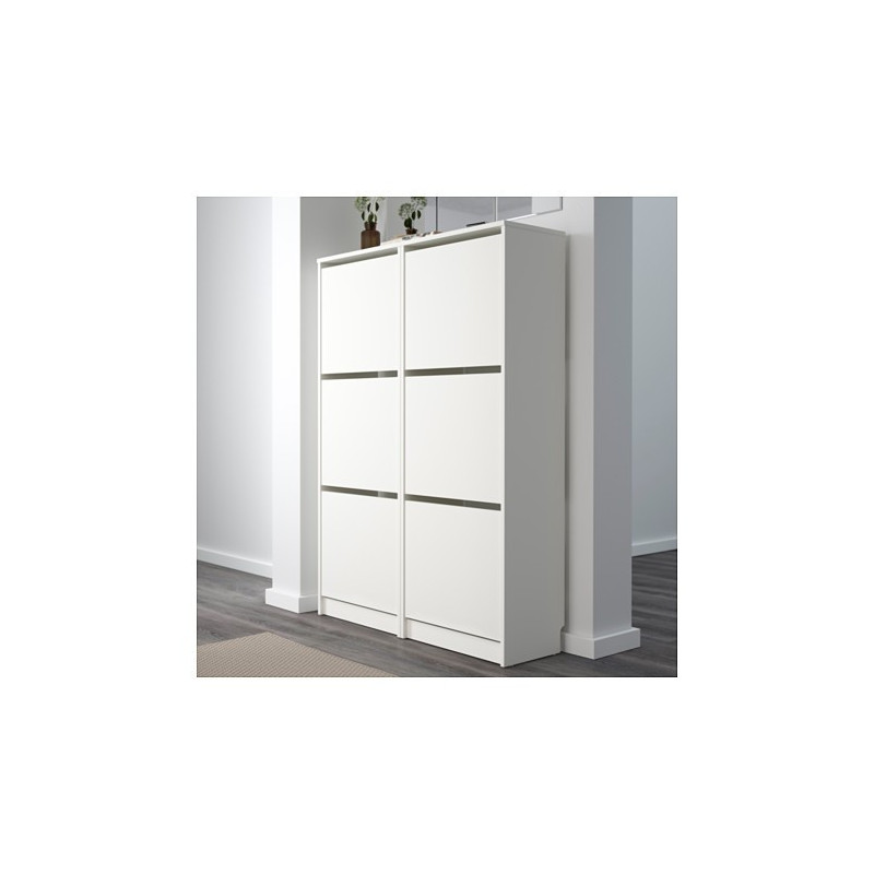 جاكفشي ایکیا مدل BISSA سه طبقهي مجزا دارد و گزينهاي مناسب براي نگهداري از دوازده جفت كفش محسوب ميشود، بنابراين اگر تعداد كفشهاي دمدستي خود يا خانوادهتان كمتر از دوازده عدد است، اين مدل بهترين انتخاب براي شماست. جاكفشي ايكيا ساده و بدون هيچ نقش و نگاري طراحي شده است تا در صورت قرار دادن آن داخل يا نزديك ورودي خانه، با ساير وسايل هماهنگ شود. نئوپان، پلياستايرن و پلاستيك ازجمله مواد اوليه بهكاررفته در ساخت اين محصول هستند. نئوپان در مقايسه با MDF استحكام و مقاومت بهتري در برابر رطوبت دارد و طول عمر آن بهنسبت خوب است، بنابراين تا چندين سال ميتوانيد از اين جاكفشي ساده و زيبا براي نگهداري از كفشهايتان استفاده كنيد. درهاي اكثر جاكفشيهاي موجود در بازار از كنار باز ميشوند و بهطورمعمول به فضاي زيادي نياز دارند. جاكفشي سه طبقهي ايكيا داراي سه در است كه بهصورت عمودي و از بالا باز ميشوند، بنابراين با باز و بسته كردن درها، محيط اطرافتان بيش از حد اشغال نخواهد شد. اين مدل سه طبقهي مجزا دارد كه هركدام قابليت نگهداري از چهار كفش را دارند. داخل هر طبقه، يك تخته تعبيه شده است كه با برداشتن آن ميتوان كفشهاي ساق بلند مانند انواع بوت را بهراحتي داخل طبقات جا داد.