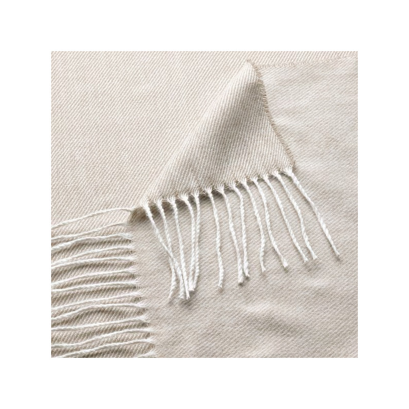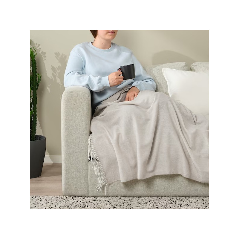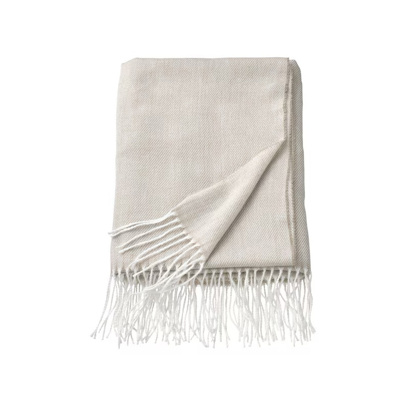 رو انداز ایکیا سری HOLMVI با رنگ بژ ولبه های ظریف وزیبا در اطراف برای محافظت شما از سرما در فضای باز، روی مبل و مسافرت مناسب است.