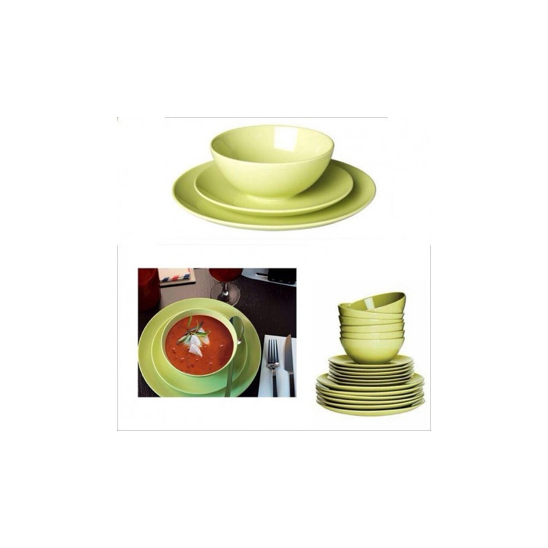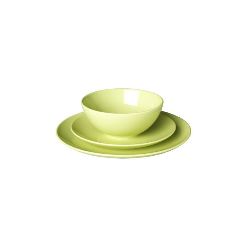 اگر به دنبال یک سرویس غذاخوری یکدست سبز هستید که به تنهایی و یا در کنار ظروف رنگی دیگر بتوانید از آن استفاده کنید، سرویس 18 پارچه برند (ایکیا) میتواند گزینهای ایدهآل باشد. این سرویس مناسب 6 نفر است که شامل شش بشقاب غذاخوری با قطر 27 سانتیمتر، شش پیاله با قطر 16 سانتیمتر، شش پیشدستی با قطر 21 سانتیمتر است. جنس این سرویس سرامیک است و میتوان آن را داخل مایکروویو ماشین ظرفشویی قرار داد. این سرویس کاملا سبز است به همین دلیل برای استفاده در کنار سرویسهایی که شلوغ و طرحدار هستند مناسب است.
