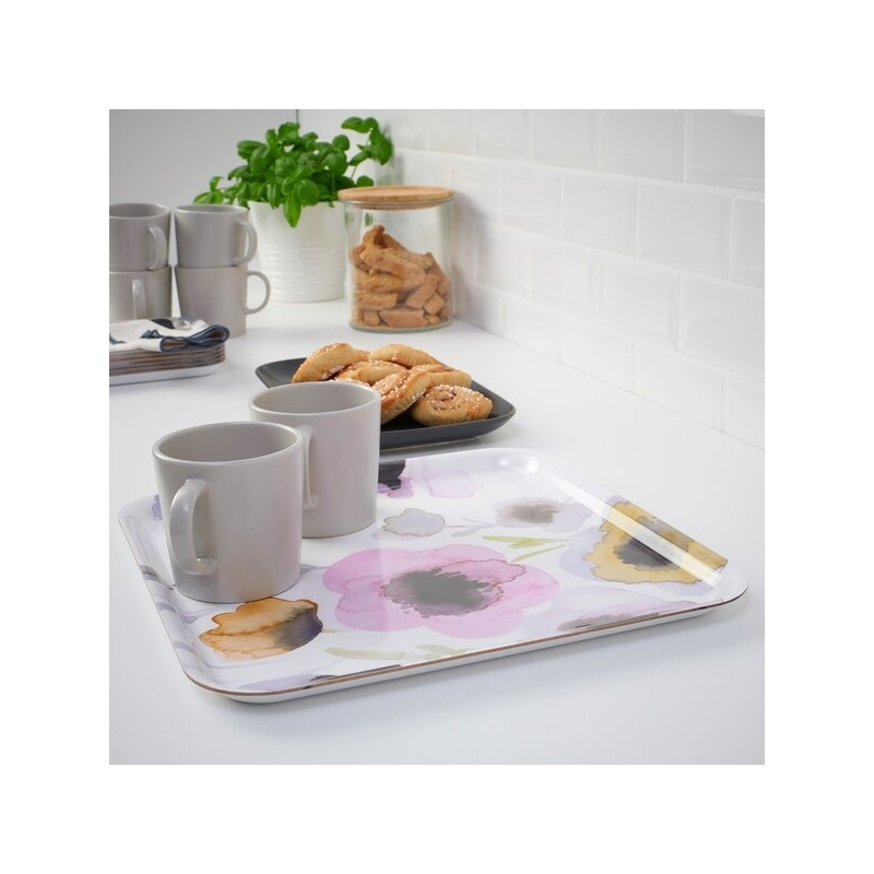 سینی بزرگ طرح گل ایکیا SAMMARFLOX هم مناسب برای سرو است هم تزیینی استفاده میشود.