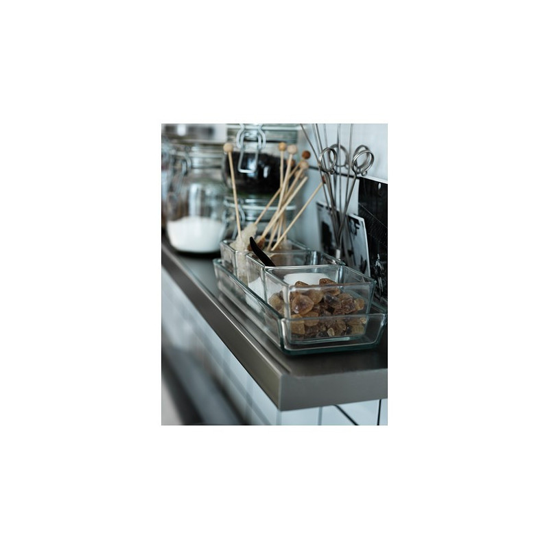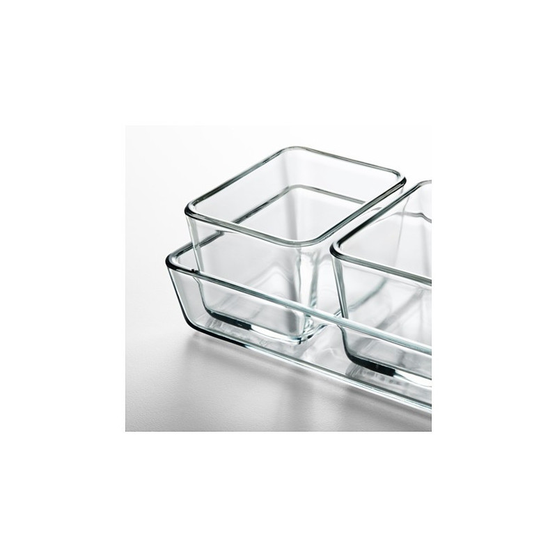 اگر جزء آن دسته افرادی هستید که در بعد ازظهرها دوست دارید جلوی تلویزیون لم داده و تنقلات متنوع را نوش‌جان کنید، پس نیاز به یک ظرف مناسب برای سرو دارید. و یا حتی برای سرو اردور هم نیاز دارید که ظرفی مناسب در اختیار داشته باشید. ظرف سرو ایکیا مدل MIXTUR ساخته شده از شیشه و با طراحی ساده برای سرو انواع تنقلات و دسر مناسب خواهد بود. این ظرف شامل سه عدد پیاله شیشه ای که درو یک ظرف بزرگتر شیشه ای قرار گرفته است.با خیالی آسوده میتوانید آن را داخل ماکروویو، فر و ماشین ظرفشویی قرار دهید.