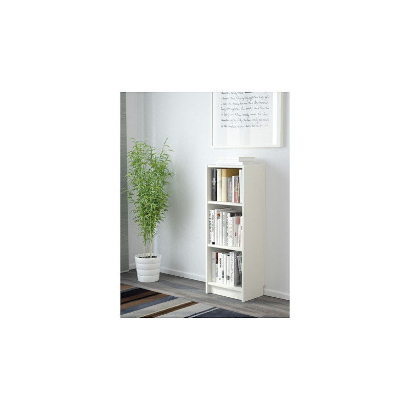 کتابخانه BILLY یک قفسه‌ی مستطیلی ایستاده با پهنای کم است که درعین سادگی در چیدمان مدرن بسیار زیبا به نظر می‌رسد. ارتفاع کتابخانه‌ 106 سانتی‌متر، عرضش 40 سانتی‌متر و عمق آن 28 سانتی‌متر است و برای قرار دادن در دو طرف میز تلویزیون، کنج دیوار، کنار تخت‌خواب و … مناسب است. فاصله‌ی  3 طبقه‌ی این کتابخانه بر حسب نیازخود قابل تنظیم است و از لترون ساخته شده که در انتها با روکش ملامینه پوشش داده شده است. این کتابخانه بدون استفاده از میخ و پیچ‌های روکار با قابلیت مونتاژ در خانه و در بسته‌بندی مقوایی عرضه شده است. نحوه‌ی سرهم‌بندی آن با توجه به کاتالوگ داخل جعبه آسان است.