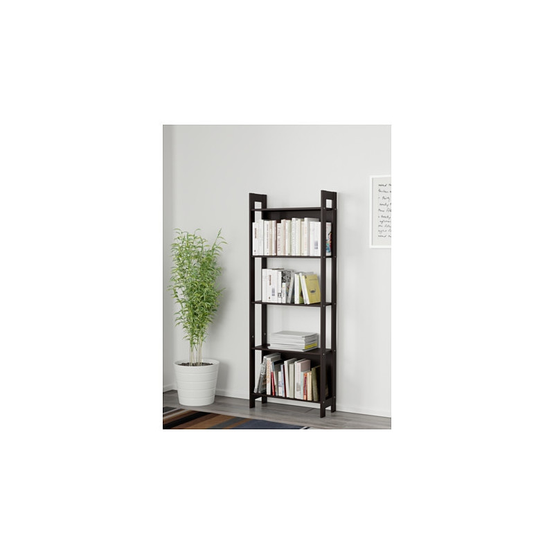 کتابخانه قهوه ای تیره ایکیا LAIVA دارای 4 طبقه میباشد که برای قرار دادن در دو طرف میز تلویزیون، کنج دیوار، کنار تخت‌خواب و … مناسب است اين محصول براي اتاق كودك و نوجوان و دانشجويان بسيار مفيد و كاربردي ميباشد و ميتواند علاوه بر كتابخانه بعنوان محلي براي قرار دادن قاب عكسهاي خانوادگي و دكوري نقش خود را در دكوراسيون اتاق ايفا كند.